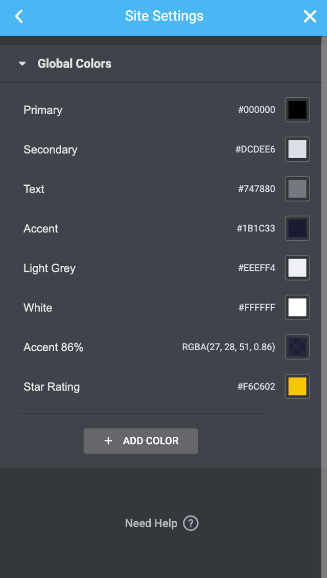 In addition to the 4 predefined global colors (Primary, Secondary, Text, and Accent), you can add any colors you choose to the global palette, for use in any Elementor color options and also named them.