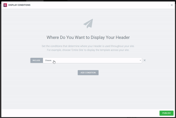With Conditions, you can set exactly where each template is implemented, whether it’s Entire Site, in a certain Category, or on a Specific Page.